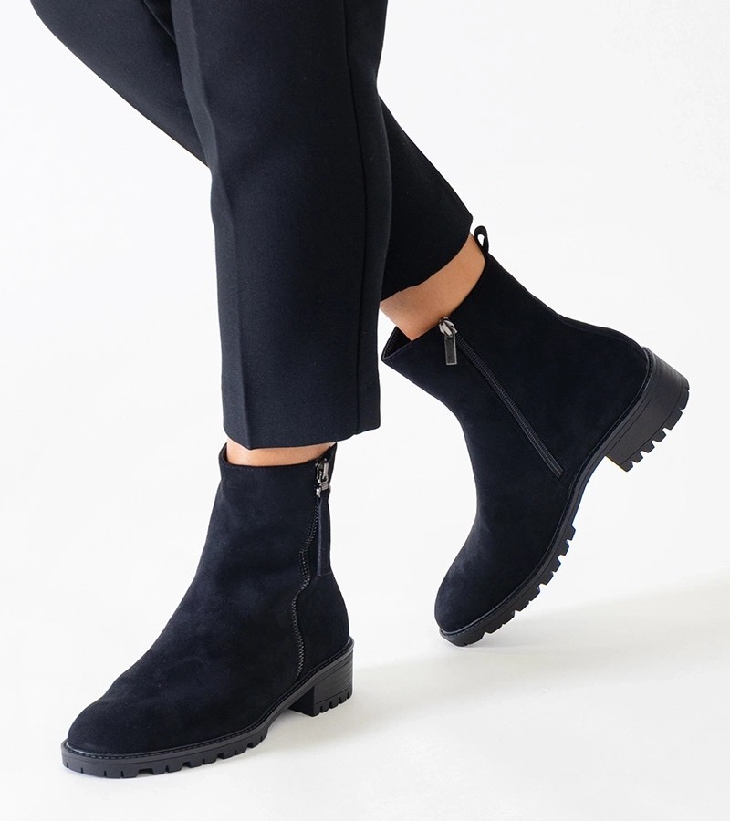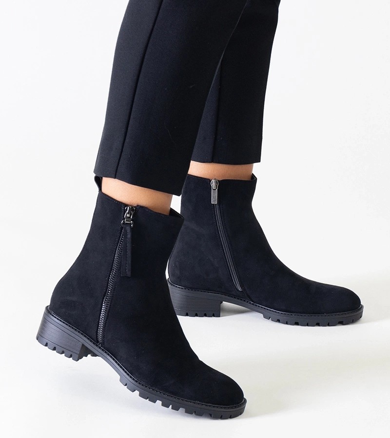 Juodos spalvos Zahra ekovamzos platforminiai aukštakulniai - puikus pasirinkimas kiekvienai moteriai, vertinančiai madingą ir pažangų stilių. Dėl elegantiško dizaino su migdoline nosimi jie ne tik labai elegantiški, bet ir labai patogūs avėti. Be to, dėl vidinio apšiltinimo jie išlaiko šilumą net ir šaltesnėmis dienomis. Jie pagaminti iš aukštos kokybės medžiagų, taip pat turi neslystantį guminį padą, kuris užtikrina stabilumą ir patogumą vaikštant. Šie madingi batai puikiai papildys bet kokią rudens ar žiemos aprangą.