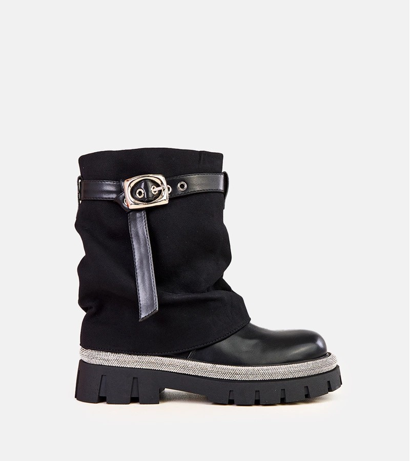 Juodi batai su apsmukusiu viršumi ir cirkonais kraštuose Yemi