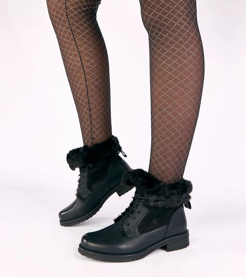 Juodi nėriniuoti batai su kailiu Joyca - stilinga ir šilta avalynė vėsioms dienoms