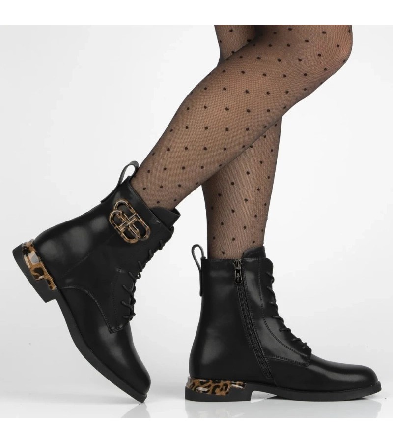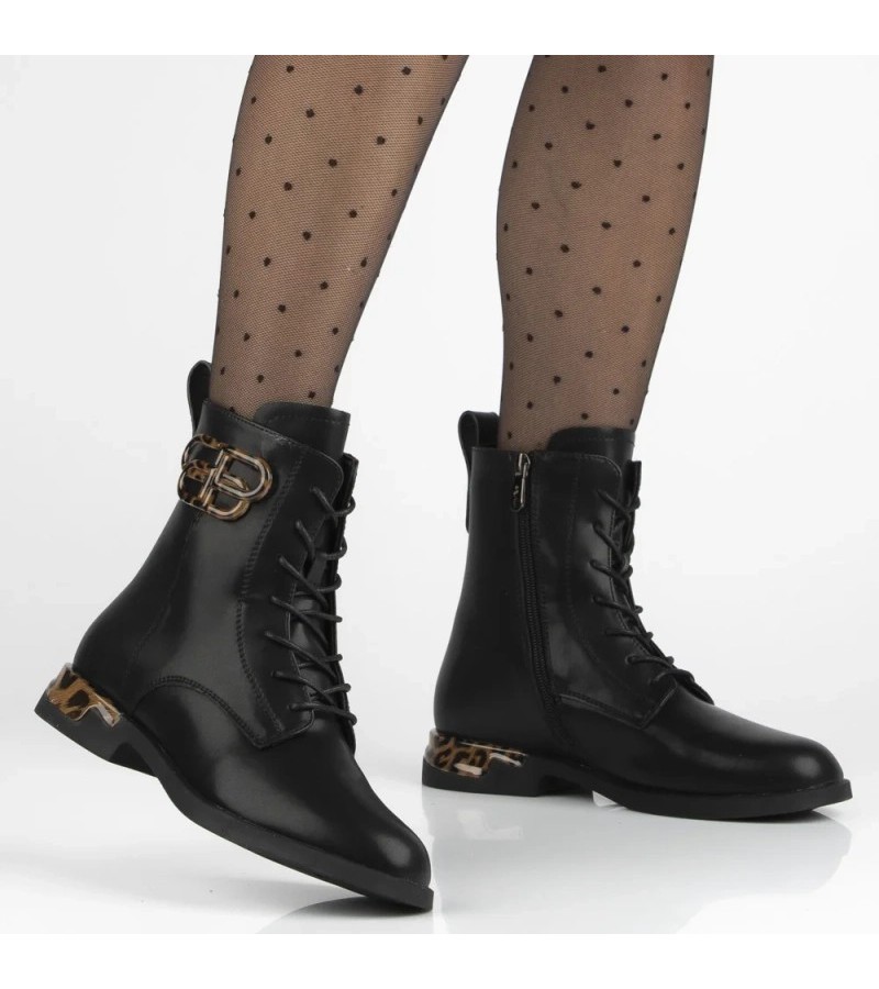 Juodi odiniai batai su leopardo raštu Rick - elegancija ir patogumas kasdieniam nešiojimui