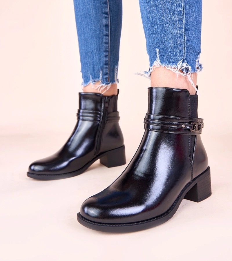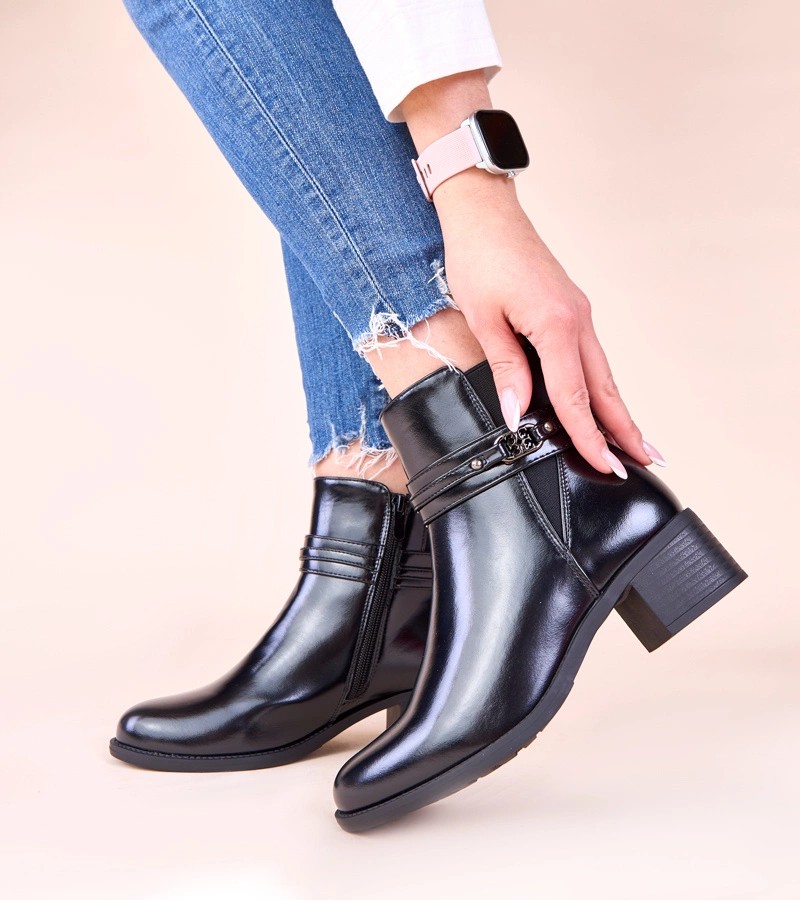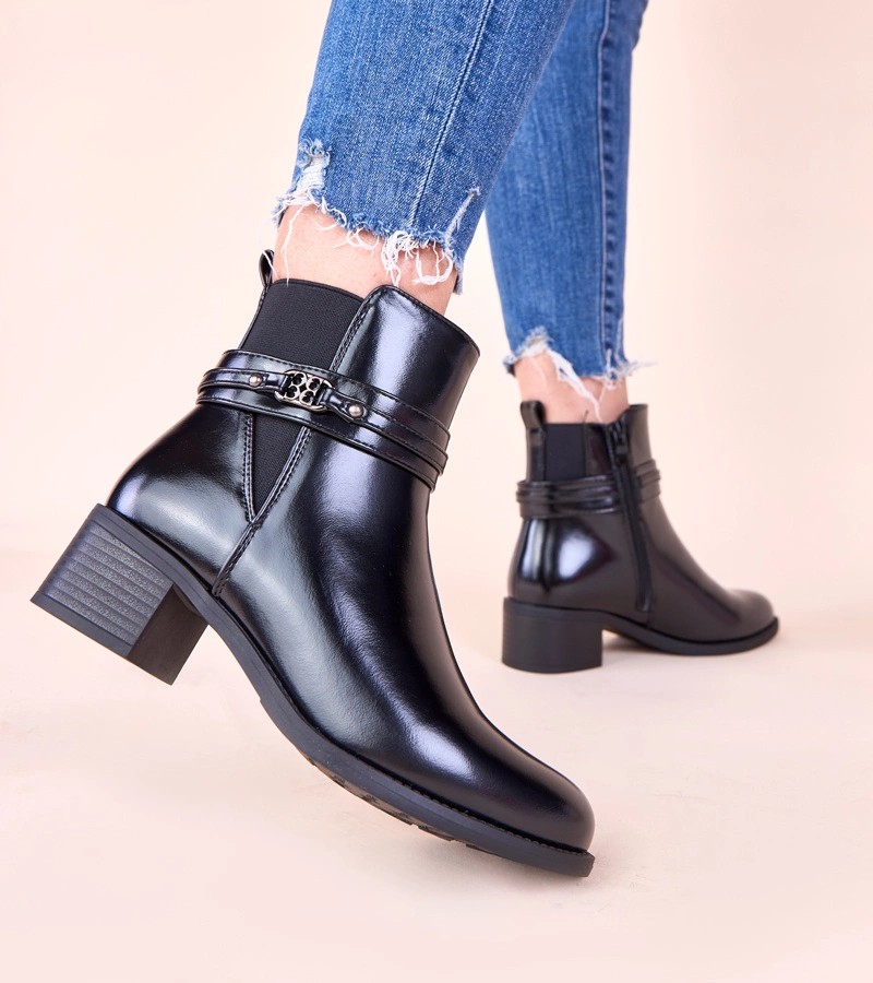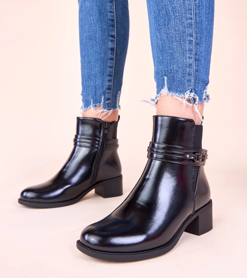 Mūsų juodi batai išsiskiria unikaliu dizainu. Dekoratyvinis dirželis suteikia jiems charakterio, pabrėždamas modernų stilių. Storas, stabilus kulniukas ne tik prideda centimetrų, bet ir užtikrina stabilumą bei patogumą kiekviename žingsnyje. Tai puiki avalynė tiek kasdienai, tiek ypatingoms progoms.
