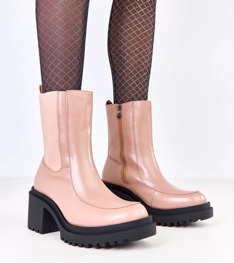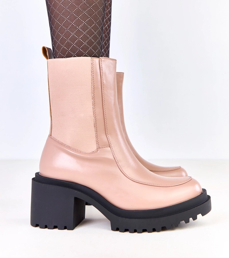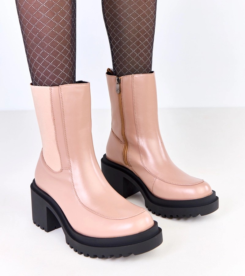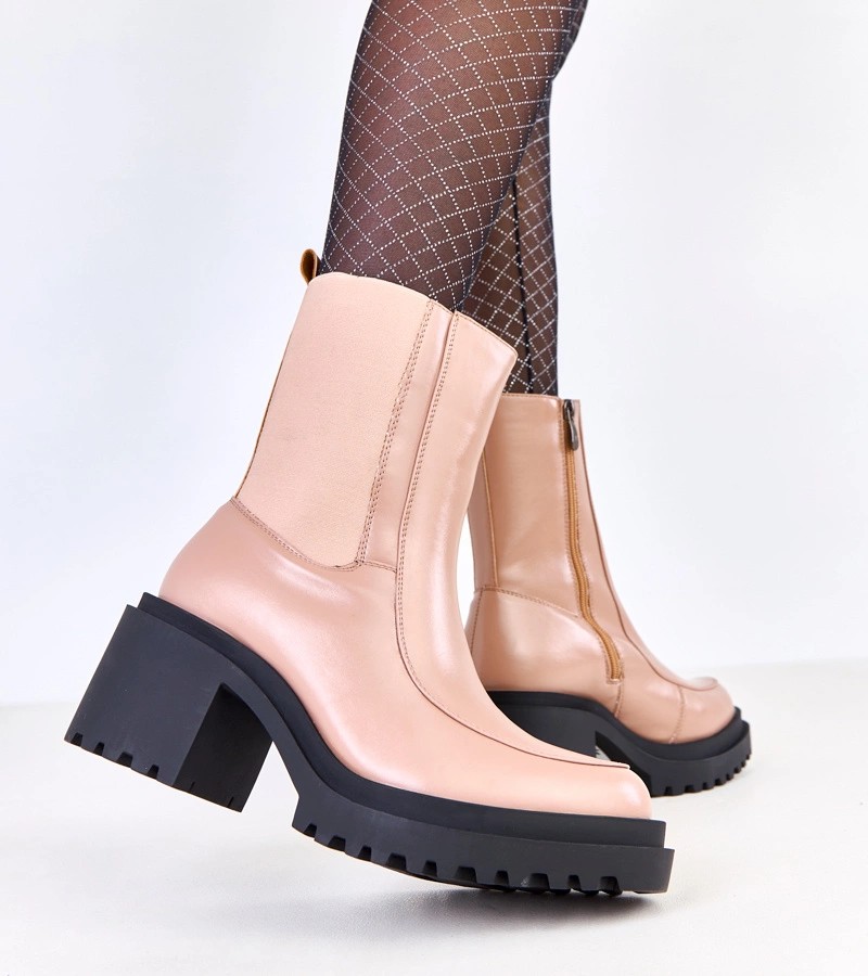 Būdingas modelio elementas - elastinis įdėklas, kuris palengvina batų apsiavimą ir nusiavimą ir kartu puikiai prisitaiko prie pėdos ir kulkšnies formos. Dėl to smėlio spalvos stiletto tipo batai su elastiniu įdėklu garantuoja stabilų laikymąsi ant pėdos be nemalonaus spaudimo. Tai puikus pasirinkimas plonesnės, taip pat šiek tiek platesnės blauzdos moterims, ieškančioms patogios, bet madingos avalynės.