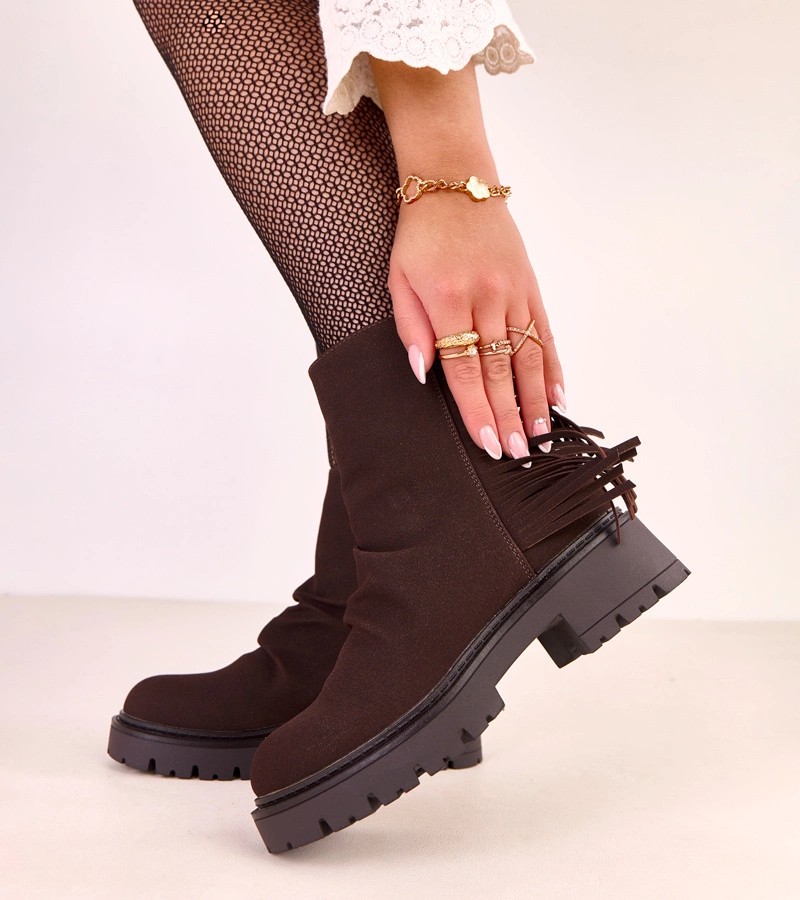 Šokoladiniai batai su kutais ir grubiu padu "Silia