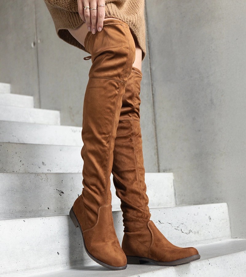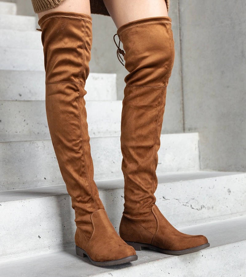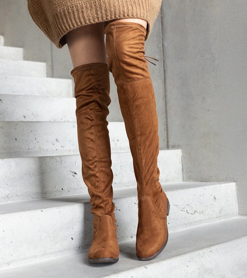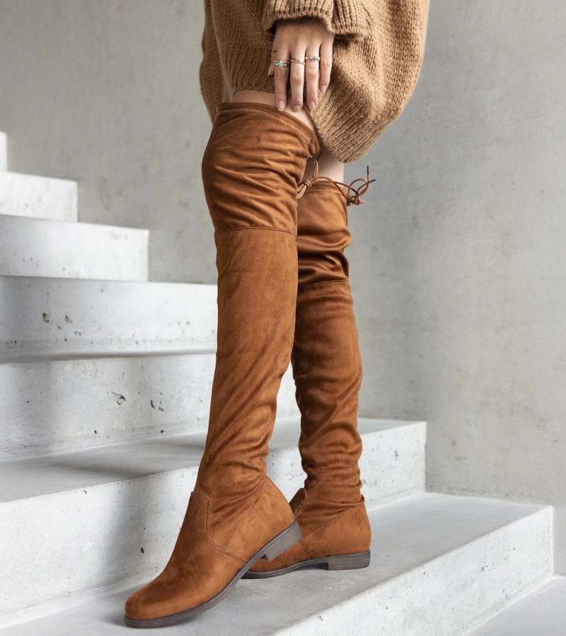 "Hallora" rudos spalvos ilgaauliai batai ant platformos iš eko zomšos
