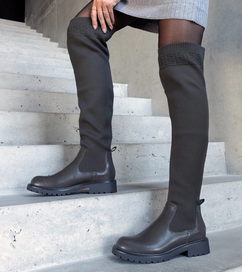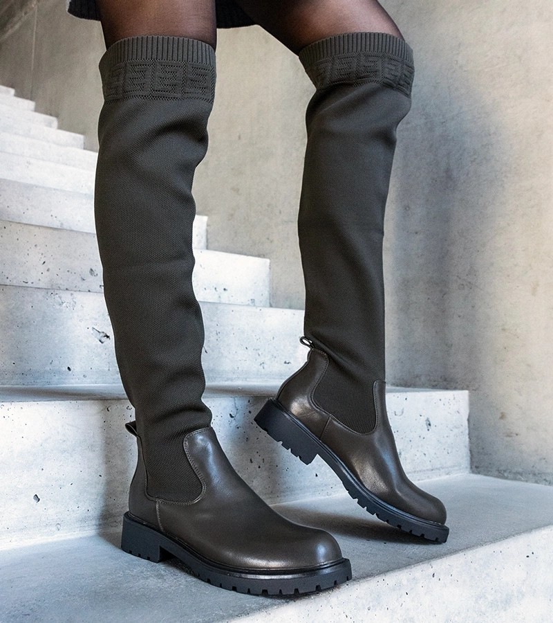Žalios spalvos ilgaauliai batai su elastinga Juanra viršutine dalimi
