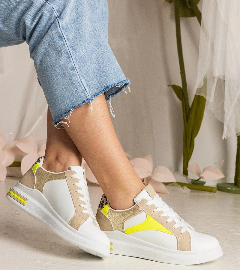 Balti sportbačiai su leopardo rašto aksesuaru iš Meril - Gemre Pristatome baltus "Meril" sportba..