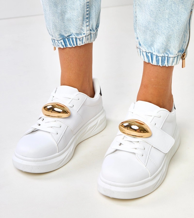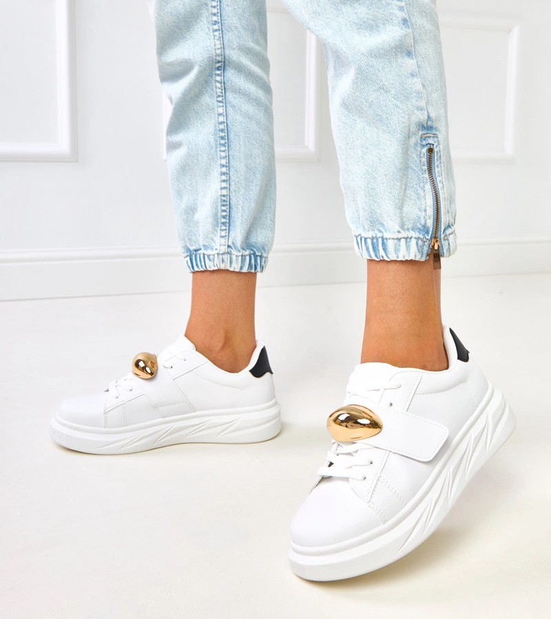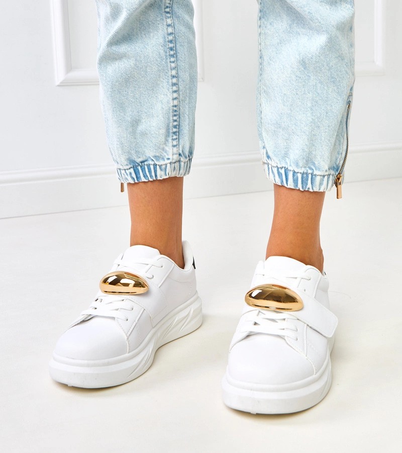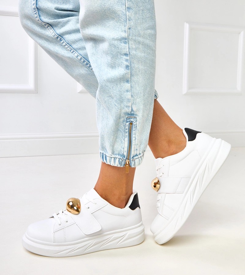 Balti platforminiai sportbačiai su auksiniais akcentais Melania