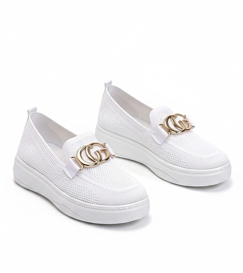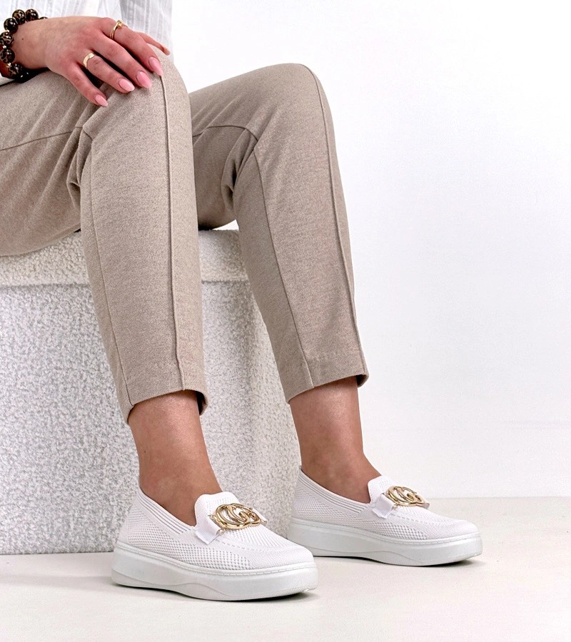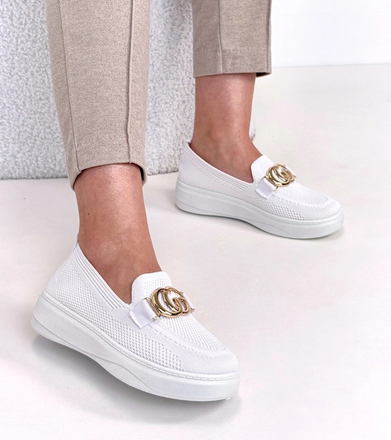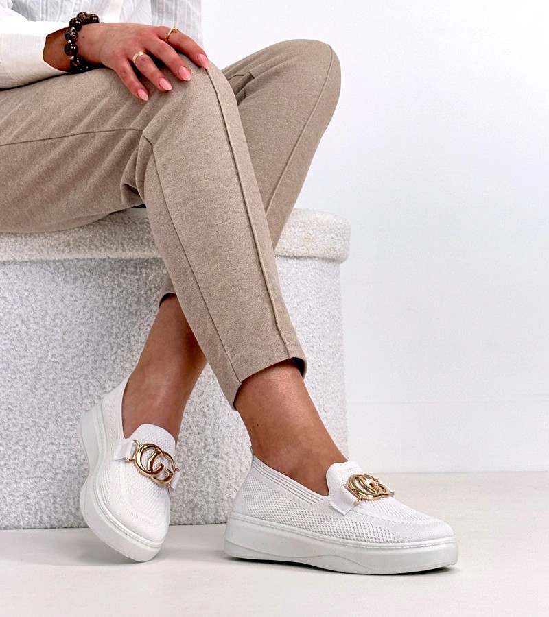 Baltos spalvos medžiaginės šlepetės su sagtimi Catherine