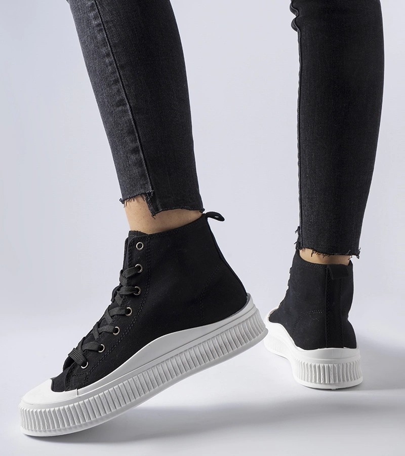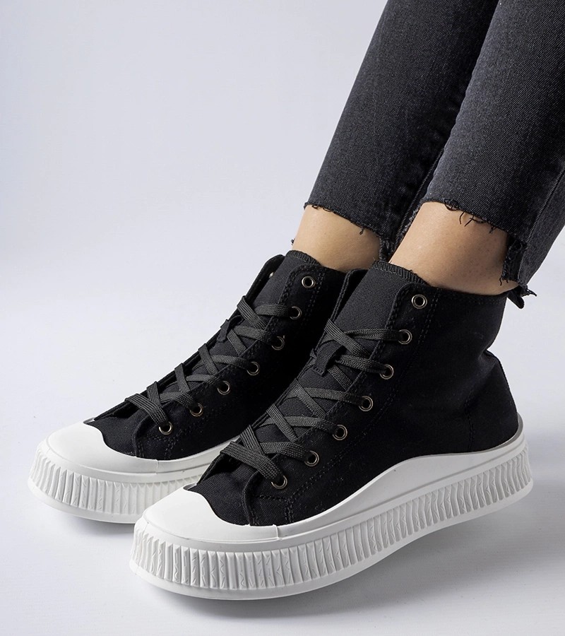 "Guerrino" juodi aukštakulniai ant aukštos platformos - puikus pasirinkimas karštomis vasaros dienomis. Jie turi apvalią nosį, kuri suteikia jiems elegancijos ir unikalumo. Pagaminti iš gumos, jie užtikrina patogumą avint ir puikų sukibimą su žeme. Bateliai suvarstomi raišteliais, kad individualiai tiktų. Jų aukštas padas pridės kelis centimetrus aukščio ir kartu užtikrins stabilumą. Tai puiki avalynė moterims, vertinančioms patogumą ir norinčioms stilingai atrodyti su vasarine apranga.