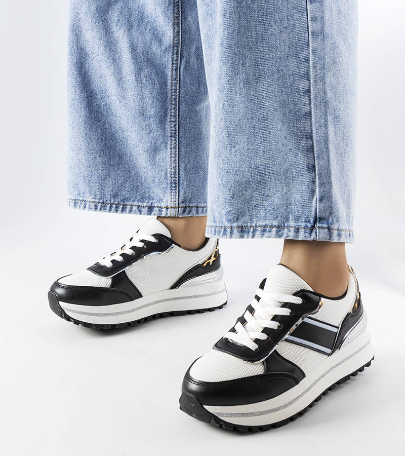 Juodi "Lang" sportbačiai su blizgiais intarpais - puikus pasirinkimas moterims, ieškančioms modernių ir madingų batų vasaros dienoms. Pagaminti iš gumos, jie užtikrina patogumą ir dėvėjimą visą dieną. Bateliai turi vidutinį kulną ir apvalią nosį, todėl atrodo labai elegantiškai ir stilingai. Bateliai yra žemi ir su raišteliais, kurie suteikia šiek tiek sportinio stiliaus. Nebrangus gaminys, atitinkantis naujausias moteriškos mados tendencijas. Nedvejodami rinkitės šiuos madingus sportbačius, kurie puikiai papildys jūsų garderobą!