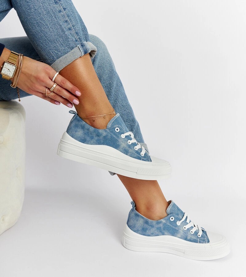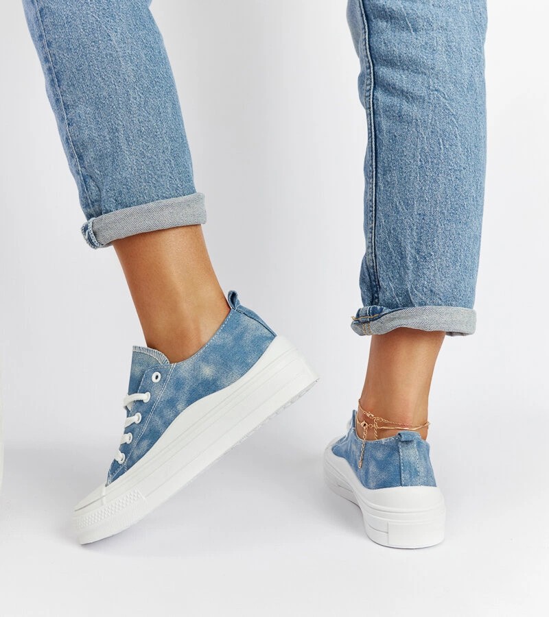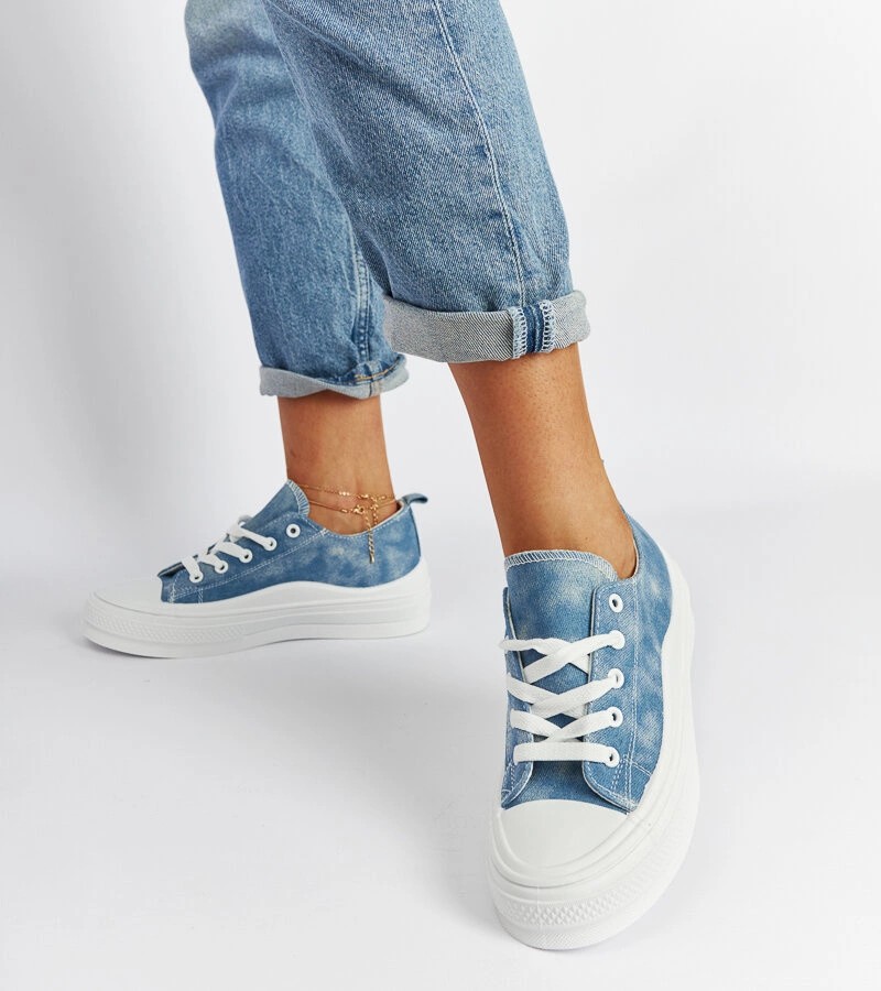 "Blais" mėlynos spalvos platforminiai bateliai - puiki avalynė karštomis vasaros dienomis. Pagaminti iš aukštos kokybės gumos, jie garantuoja maksimalų komfortą ir patogumą dėvint. Jų apvali pirštų dalis suteikia stilingumo, kartu pabrėždama revoliucinį jų dizainą. Bateliai turi žemą vidutinio aukščio kulniuką, todėl tinka tiek kasdieniam pasivaikščiojimui mieste, tiek vakariniams susitikimams su draugais. Dėl raišteliais užsegamo užsegimo juos galėsite prisitaikyti pagal savo individualius poreikius ir pageidavimus. Mėlyni Blais platforminiai sportbačiai yra populiarus pasirinkimas tarp madingų moterų, kurios vertina ir stilių, ir patogumą.