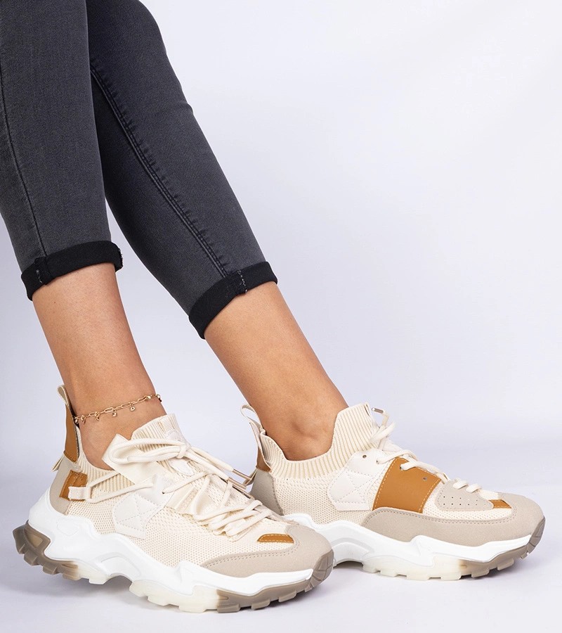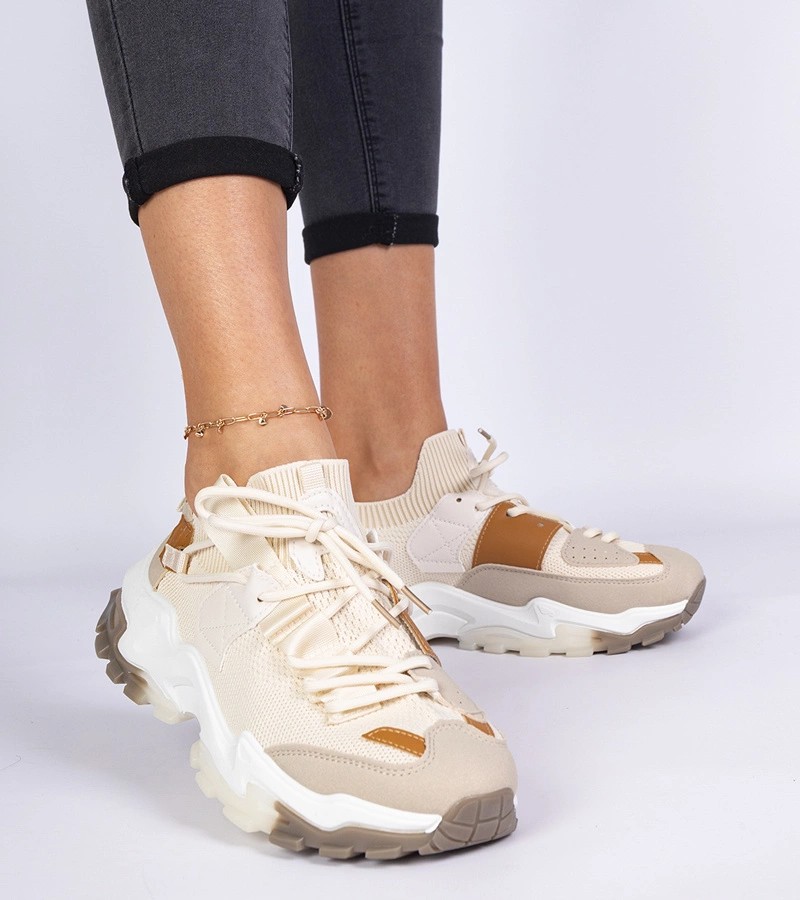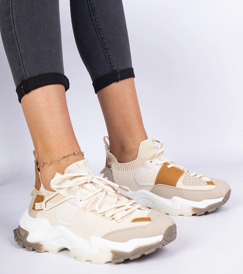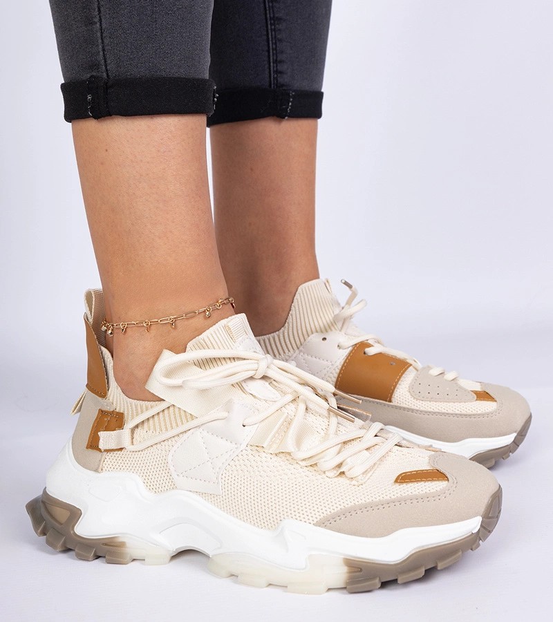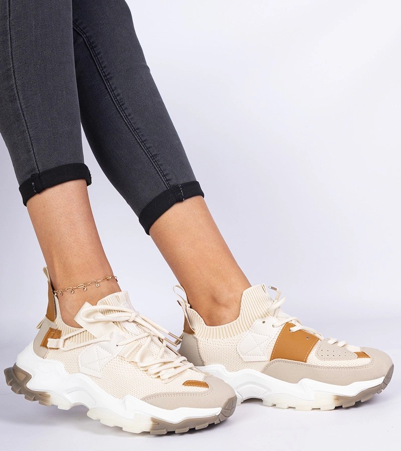 Pristatome " Milada" smėlio spalvos moteriškus sportbačius su kojinių batviršiu, kurie puikiai derina stilių ir patogumą. Šie unikalūs " Gemre" sportbačiai - puikus pasirinkimas moterims, vertinančioms modernų dizainą ir dėvėjimo patogumą. Šie bateliai, turintys naujovišką kojinių batviršio dizainą, puikiai prisitaiko prie pėdos formos, kad būtų maksimaliai patogūs visą dieną.