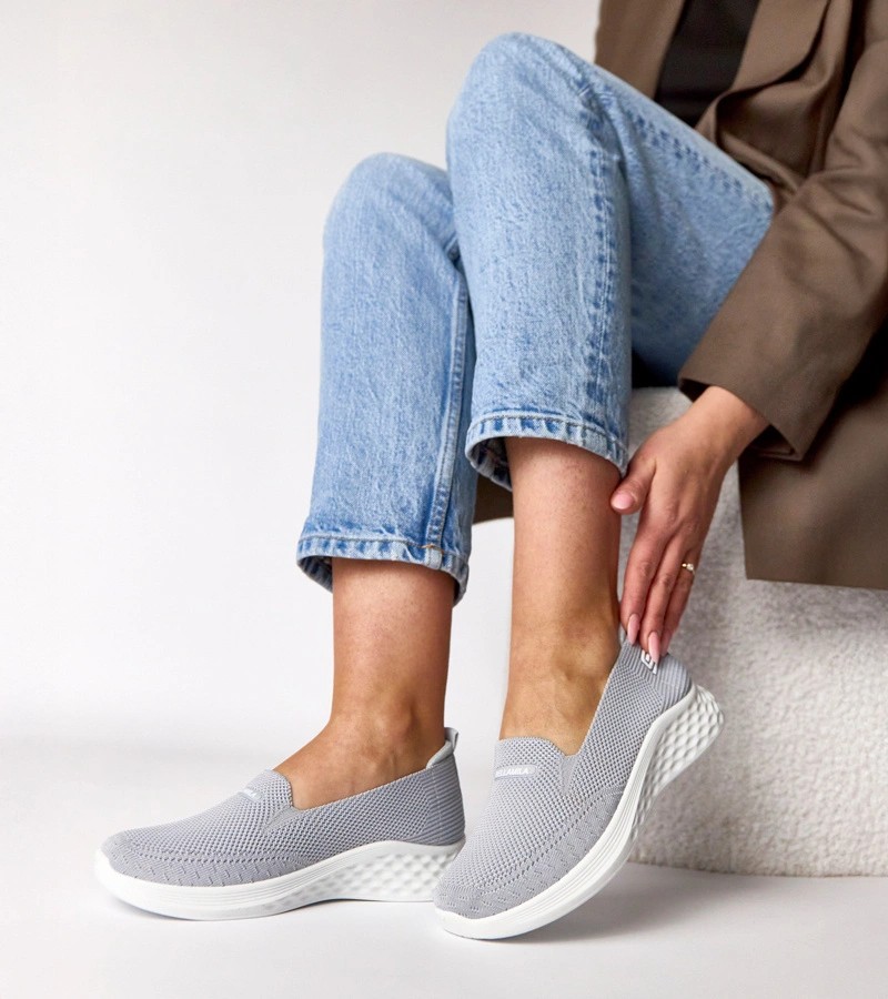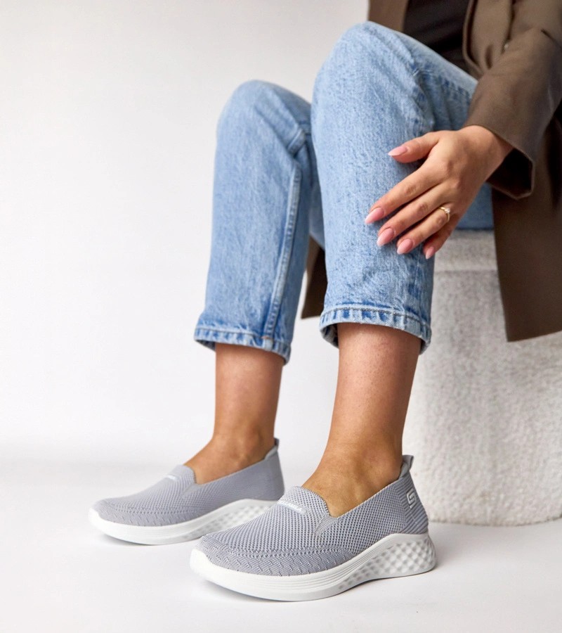 Pilkos spalvos medžiaginės šlepetės "Zoe