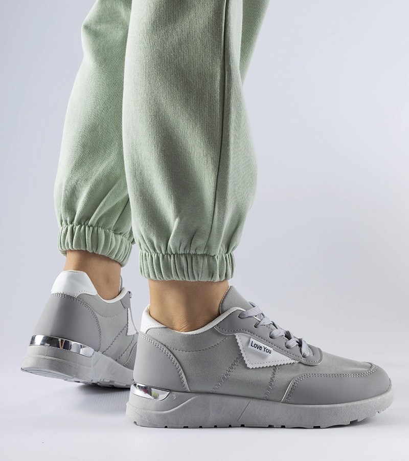Pilkos spalvos medžiaginiai sportbačiai Geraldino