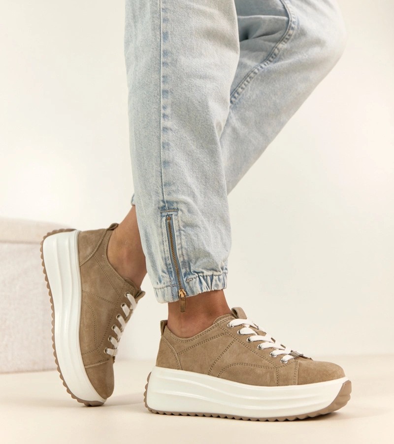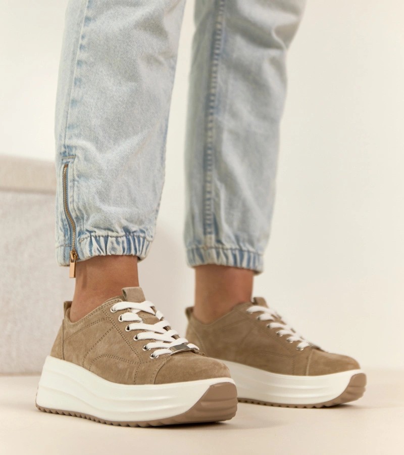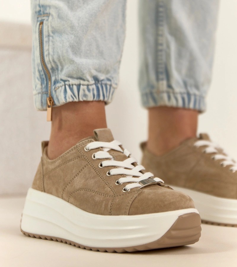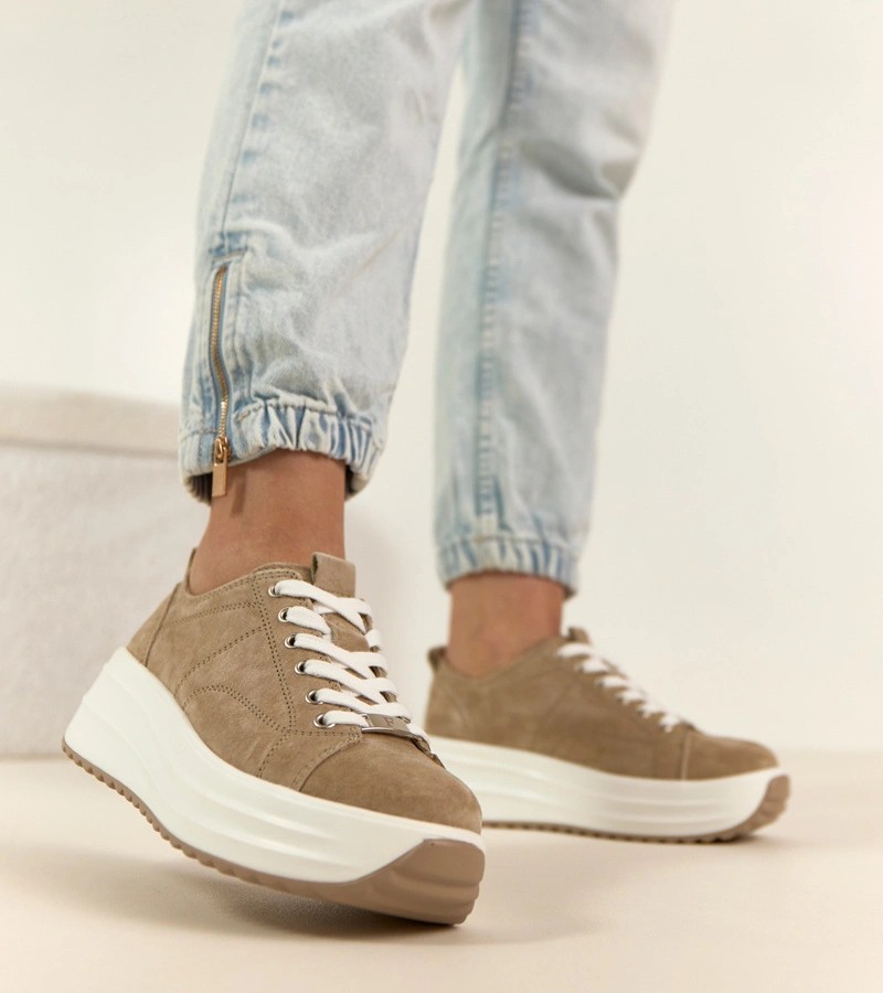 Smėlio spalvos odiniai platforminiai sportbačiai Filippo