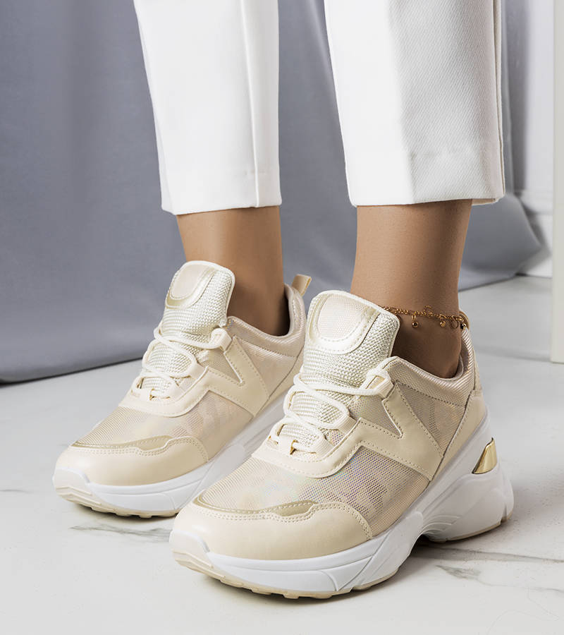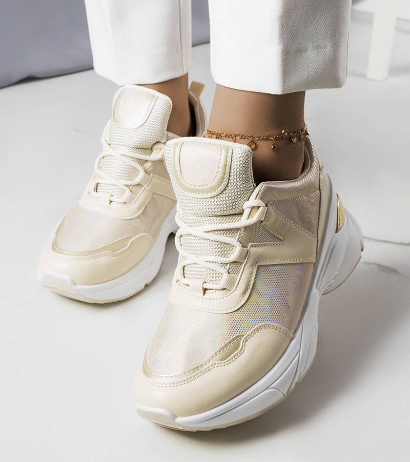 Smėlio spalvos sportiniai bateliai su metaliniais intarpais Ruais