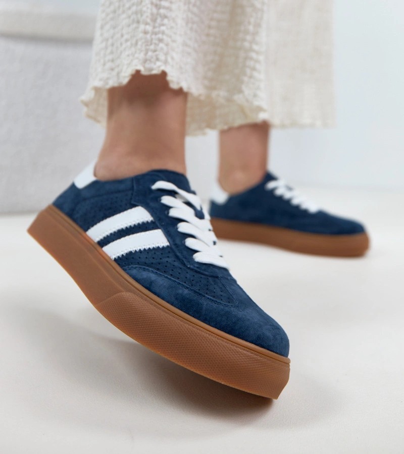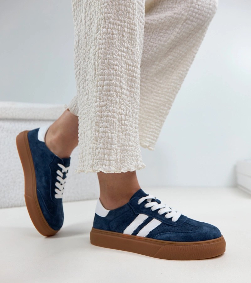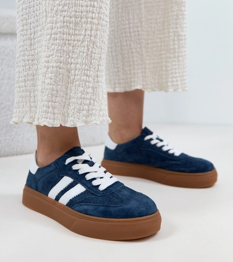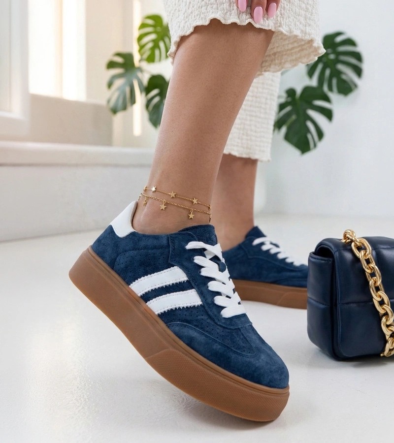 Tamsiai mėlyni Cambell platforminiai odiniai sportbačiai