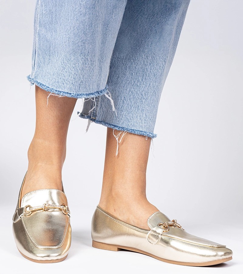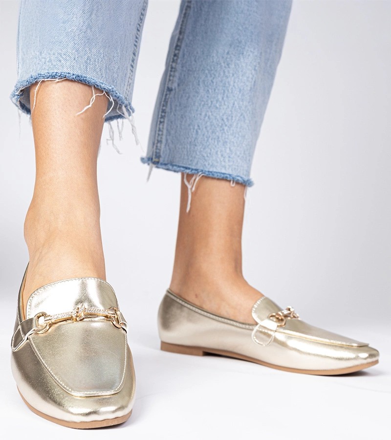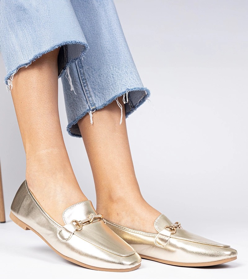 Auksiniai elegantiški mokasinai su auksiniais papuošimais ir cirkonais Kalisa