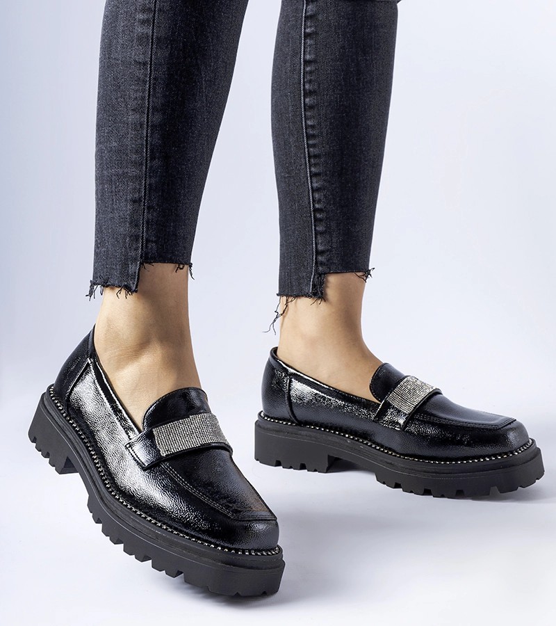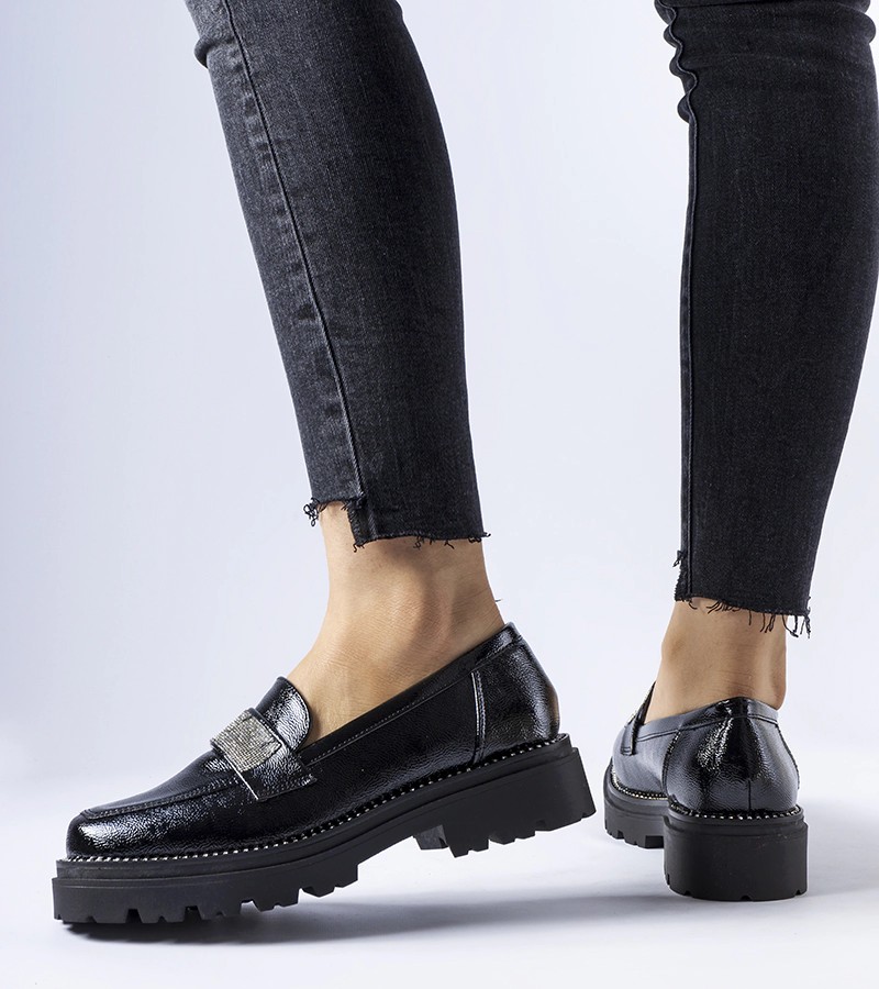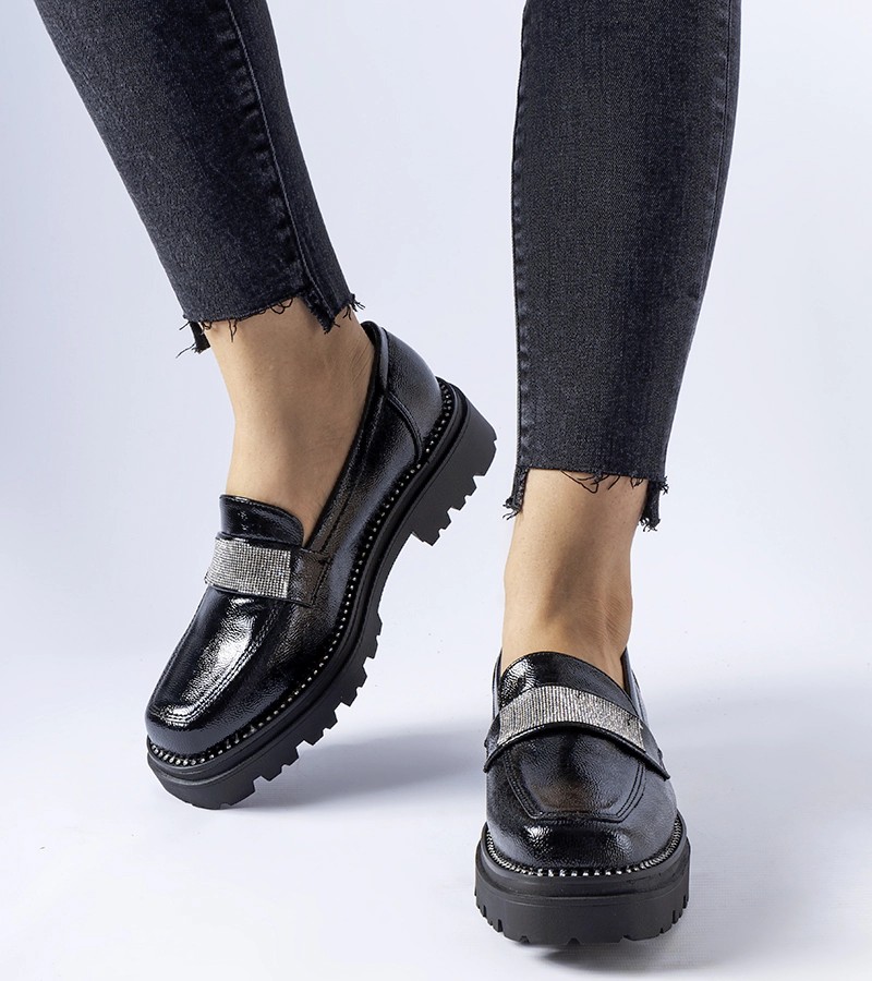 "Fecteau" juodi lakuoti mokasinai - puikus pasirinkimas karštomis dienomis, nes jie užtikrina neprilygstamą komfortą ir gaivumą. Šie įsispiriami batai su gražiai išdėliotais cirkonais suteikia žavesio bet kokiam vasaros įvaizdžiui. Apvali pirštų dalis suteikia jiems šiuolaikiškumo ir kartu išryškina novatorišką dizainą. Šie žemi mokasinai pagaminti iš gumos, todėl garantuoja ilgaamžiškumą ir tvirtumą, todėl puikiai tinka avėti kasdien. Nesvarbu, ar vaikštinėsite po miestą, ar eisite į pasimatymą su draugais, šie juodi lakuoti "Fecteau" mokasinai bus jūsų nepakeičiamas palydovas, suteikiantis ne tik stilingą išvaizdą, bet ir patogumą visą dieną.