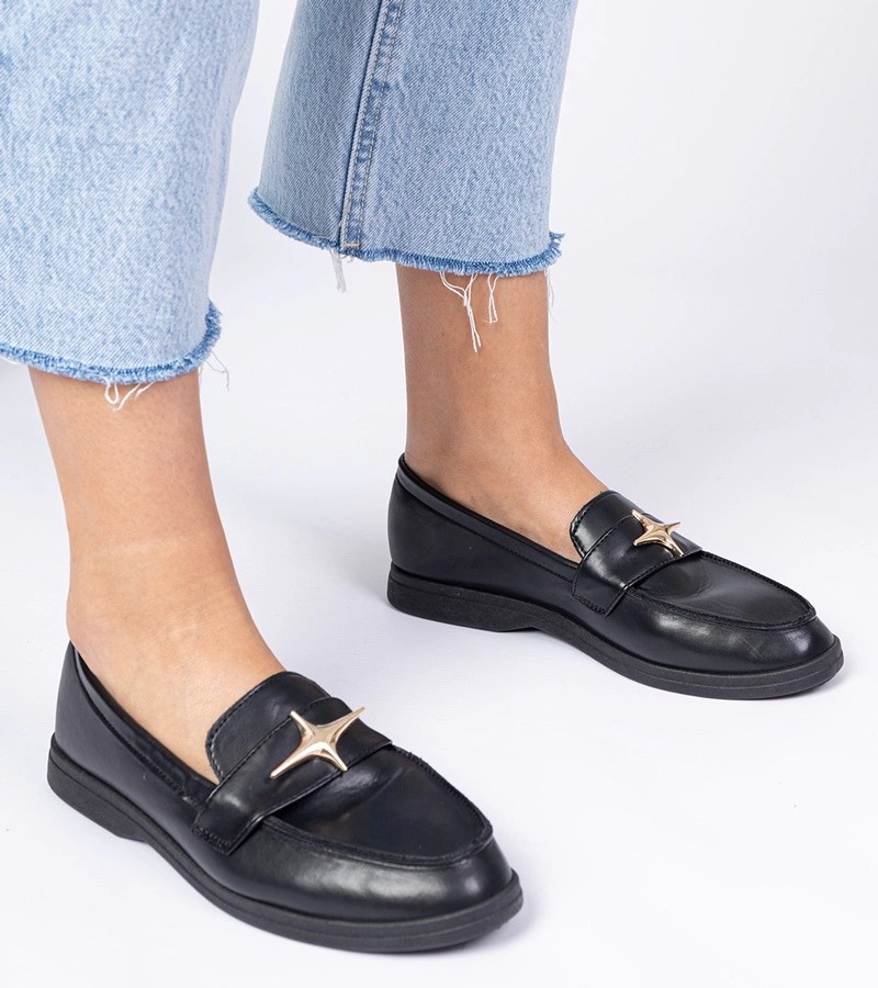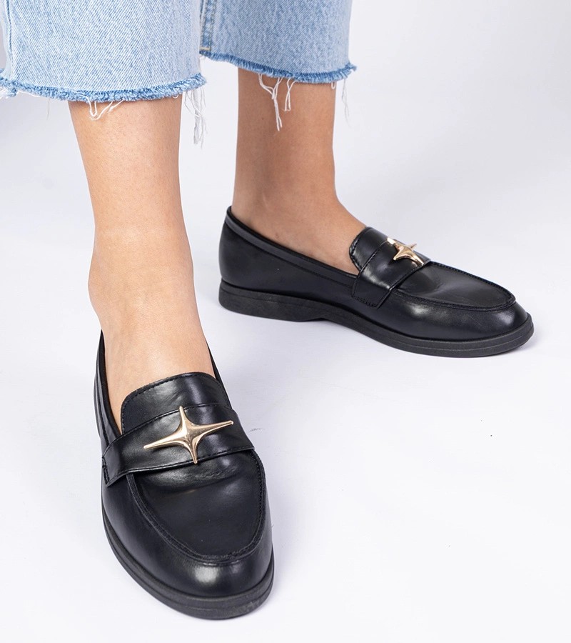 Atraskite išskirtinį stilių ir nepakartojamą eleganciją su juodais moteriškais mokasinais su aukso puošmena "Senna" iš garsaus prekės ženklo " Gemre". Šie gražūs moteriški mokasinai - puikus pasirinkimas moterims, vertinančioms ir patogumą, ir madingą išvaizdą.