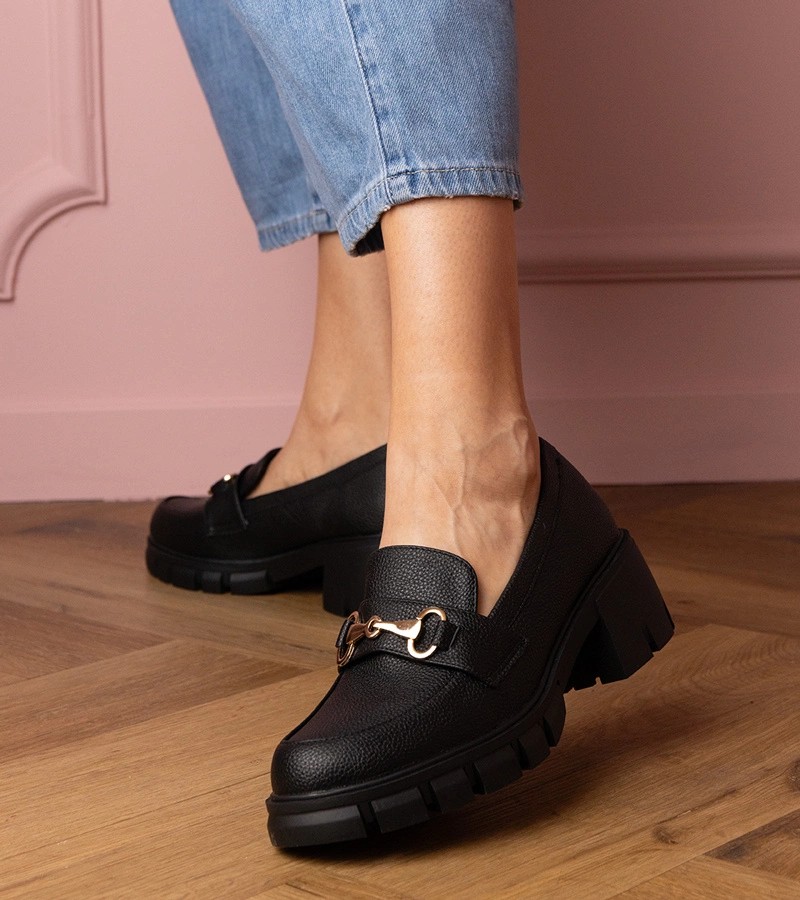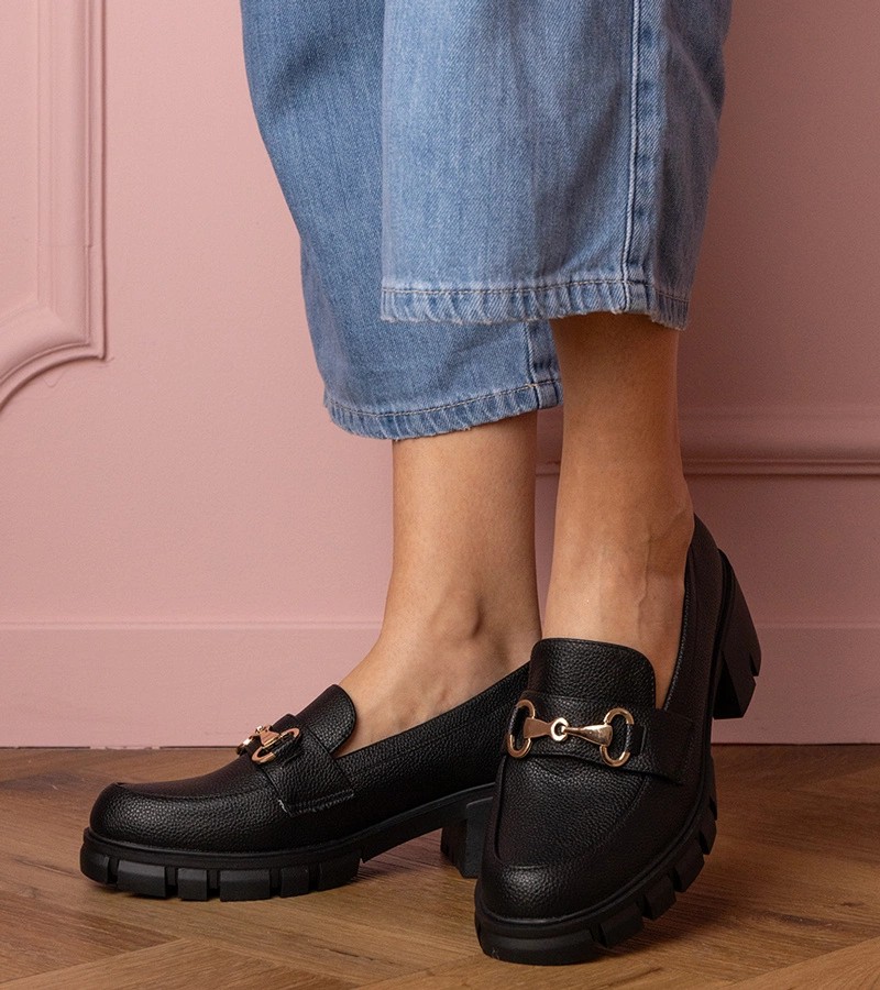 Juodi žemi aukštakulniai su aukso puošmena Marela