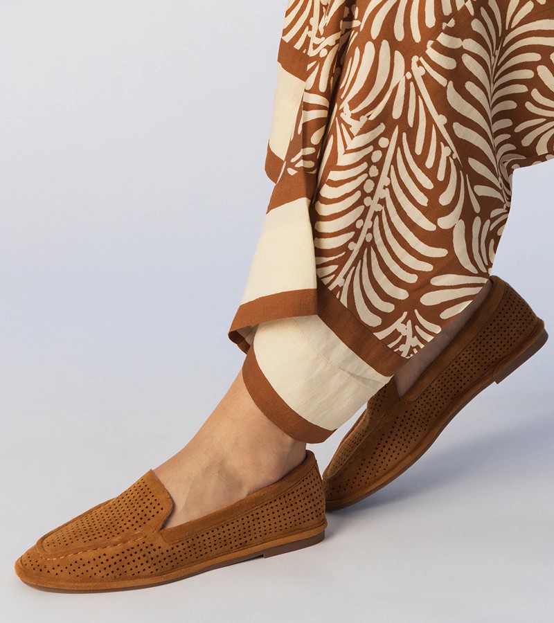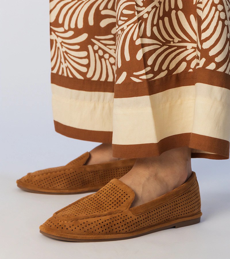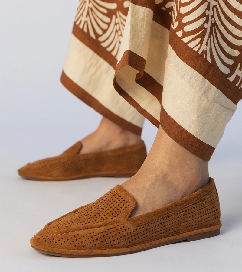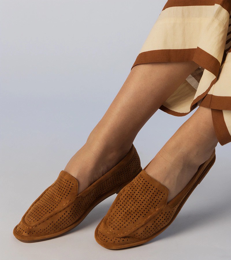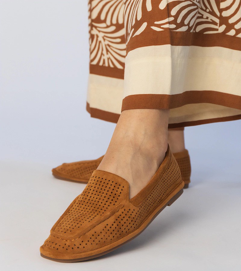 Ažūrinis raštas mokasinams suteikia lengvumo ir originalumo, todėl jie yra puikus pasirinkimas šiltomis dienomis. Dėl subtilaus karamelinio atspalvio mokasinus lengva priderinti prie įvairios aprangos - tiek laisvalaikio, tiek elegantiškesnės. Dėl universalaus dizaino jie puikiai papildys bet kurį garderobą.