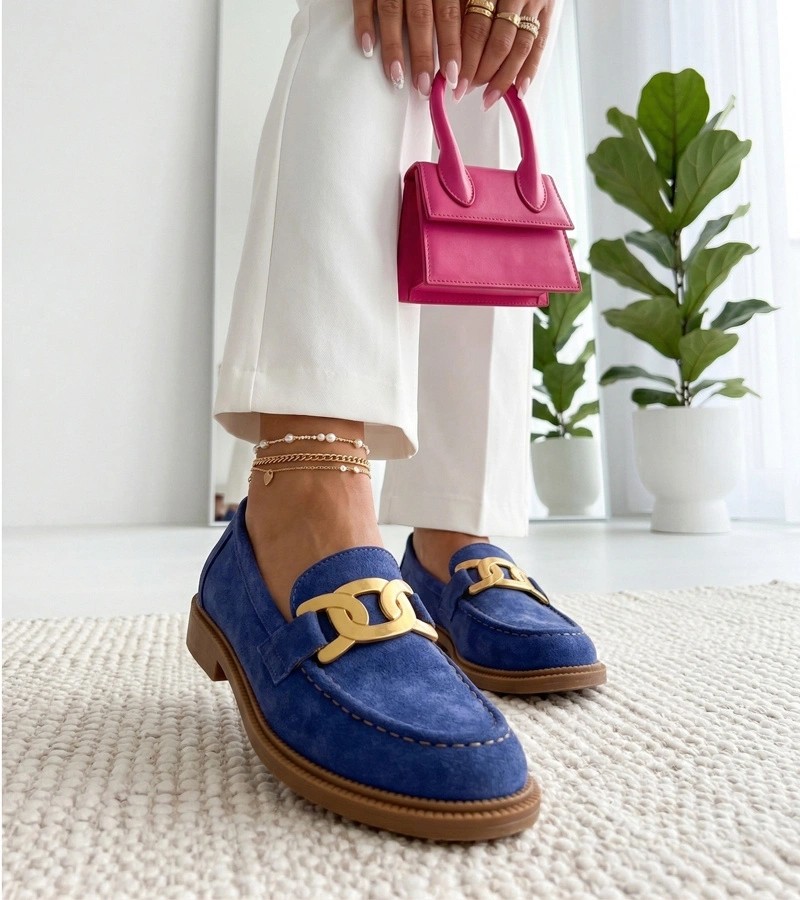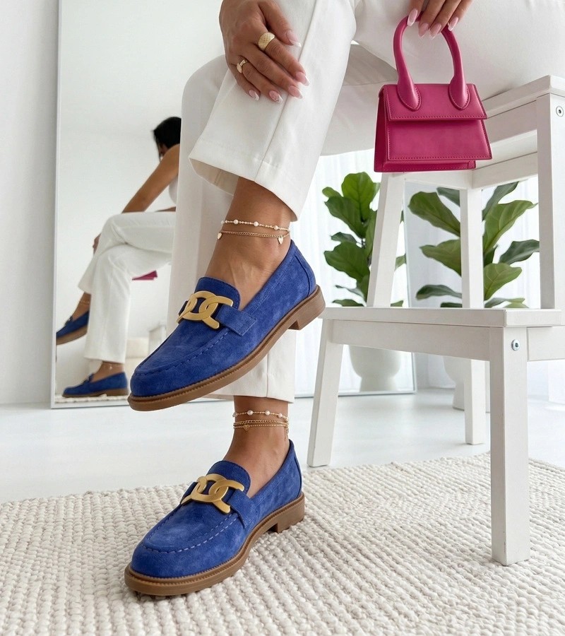 Mėlyni mokasinai su dekoratyvine sagtimi Leopoldine
