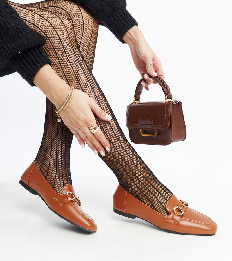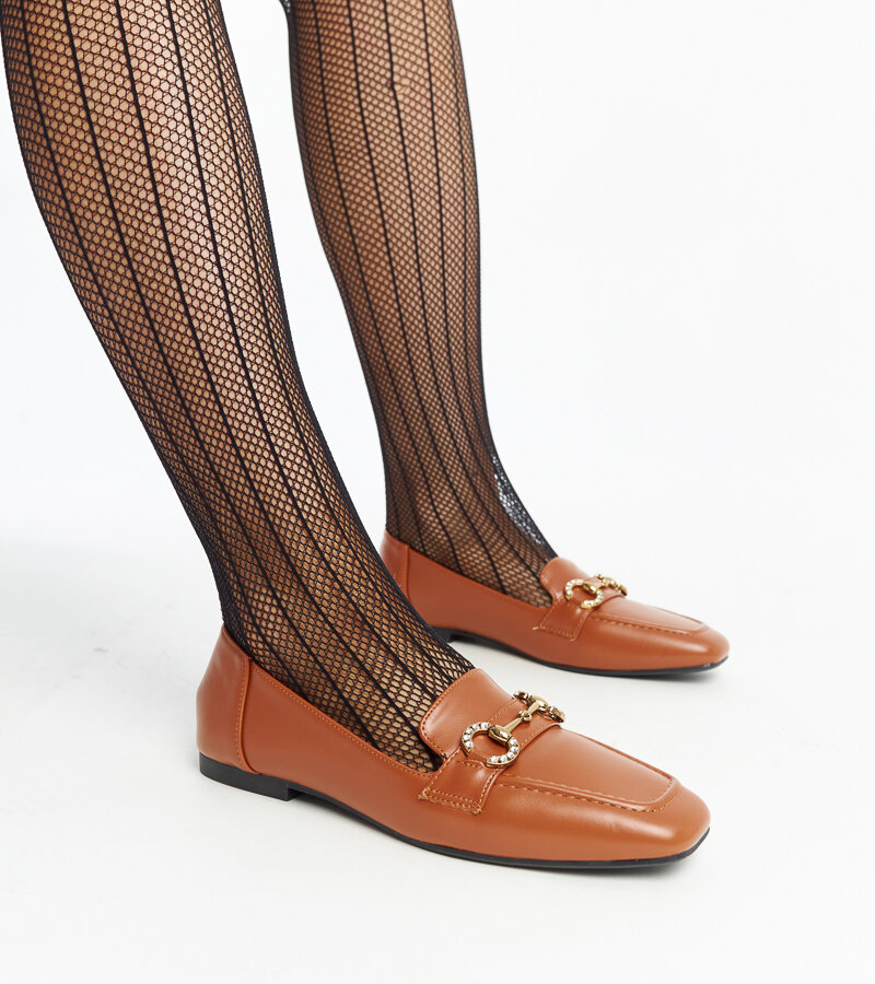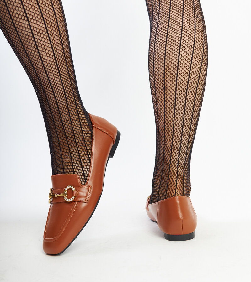 mokasinai, sagtis, rudi, kvadratiniai pirštai, suvarstomi, žemi, cirkonis, modernistiniai, plastikiniai, populiarūs, Areebah kirpimas
