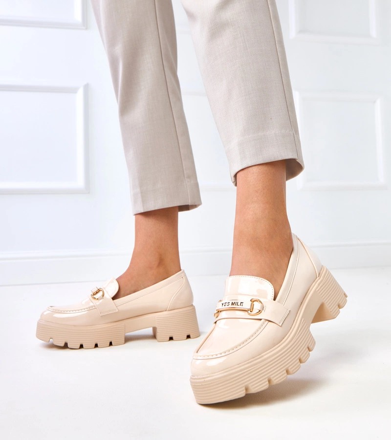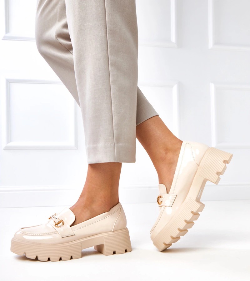 Smėlio spalvos lakuoti mokasinai su Kidane puošyba