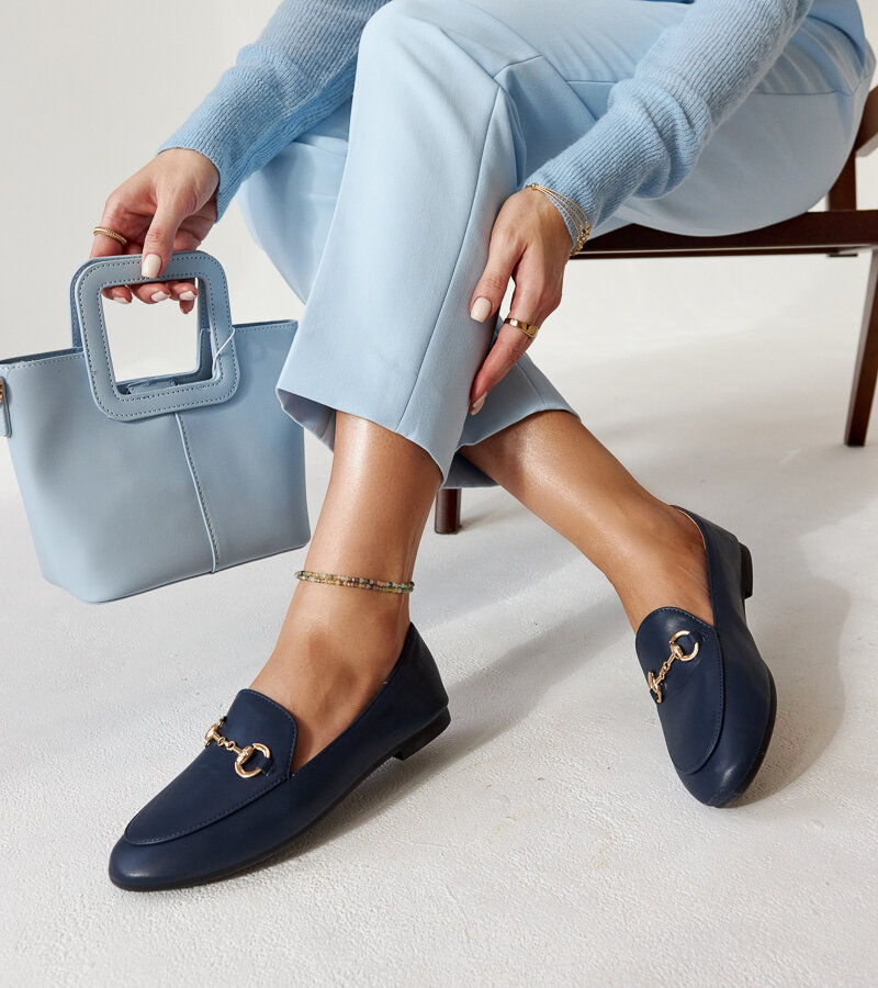 Tamsiai mėlyni mokasinai su sagtimi Erminia
