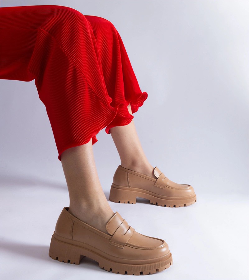 Tamsiai smėlio spalvos eko odos mokasinai iš "Fiorenza