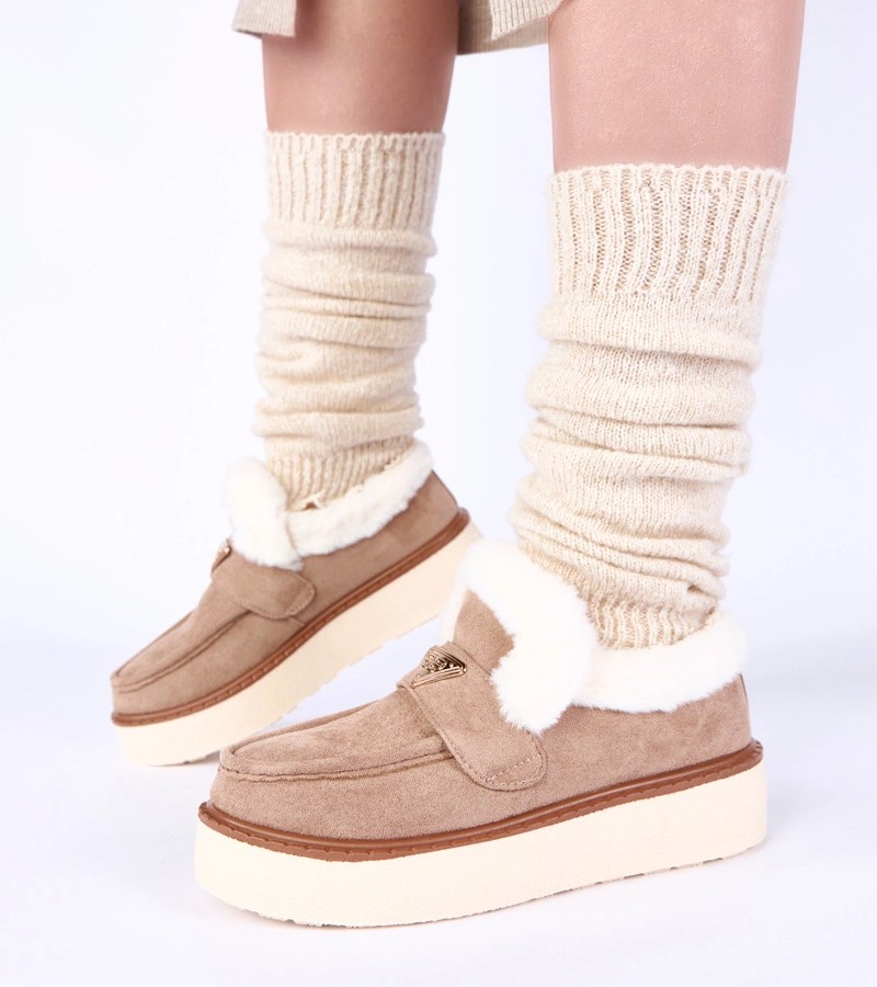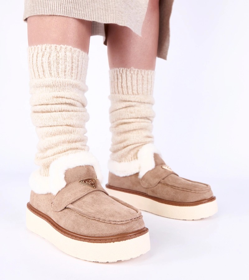 Tamsiai smėlio spalvos mokasinai su kailiu Loafy