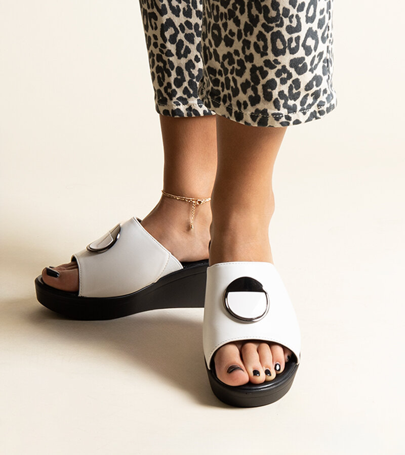 Baltos šlepetės ant platformų su Keirenh sagtimi