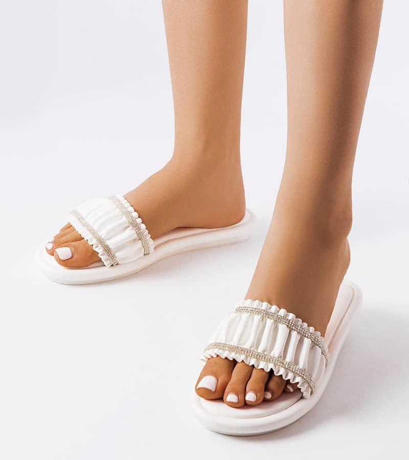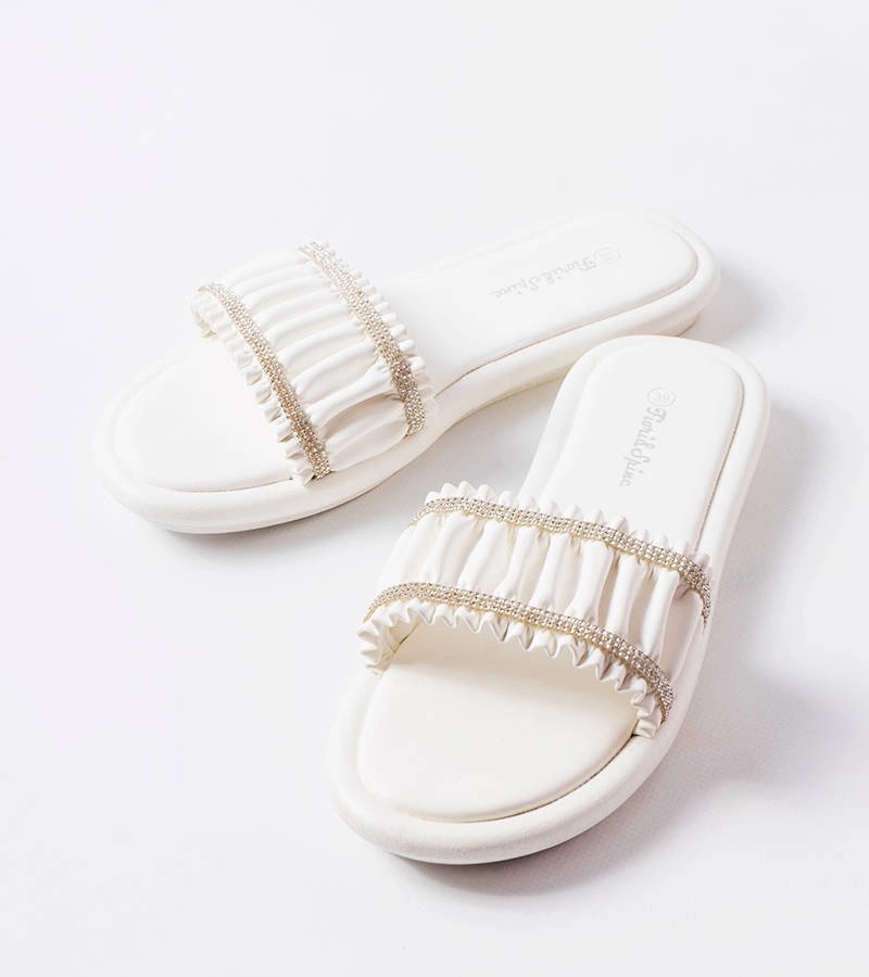 Baltos spalvos šlepetės su raukšle ir kubiniais cirkoniais Anapor