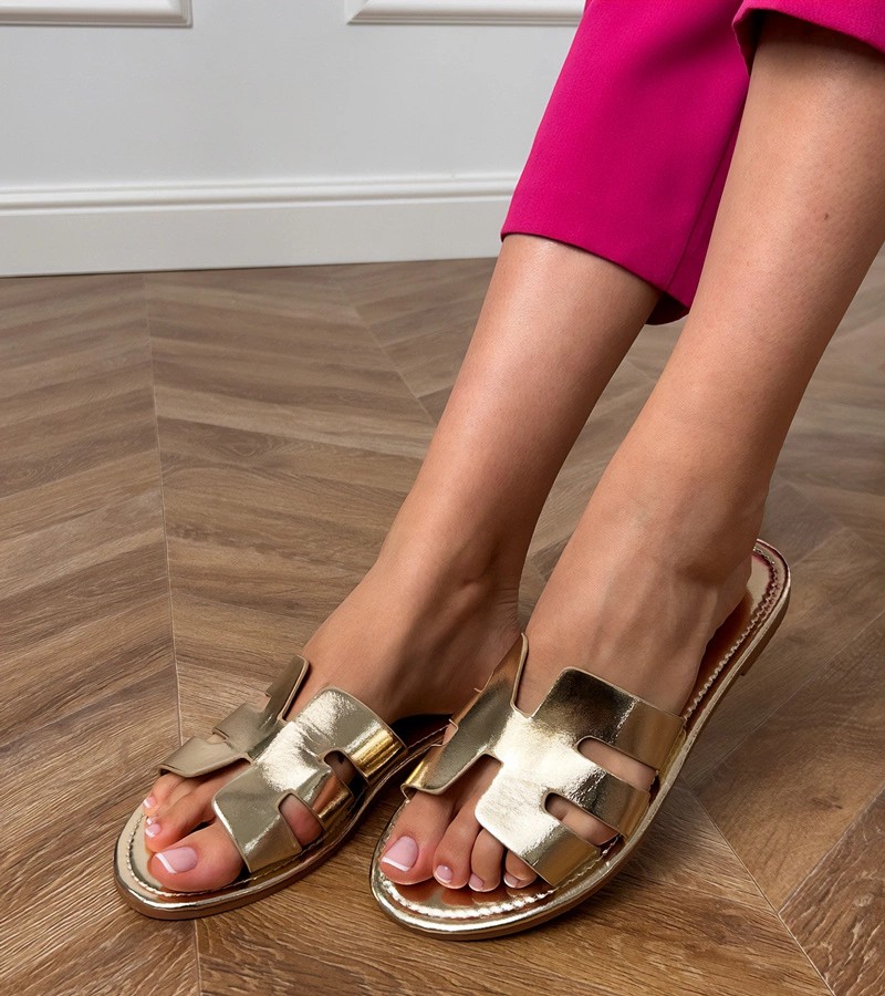 "Ragos" auksinės šlepetės, dekoruotos išpjovomis