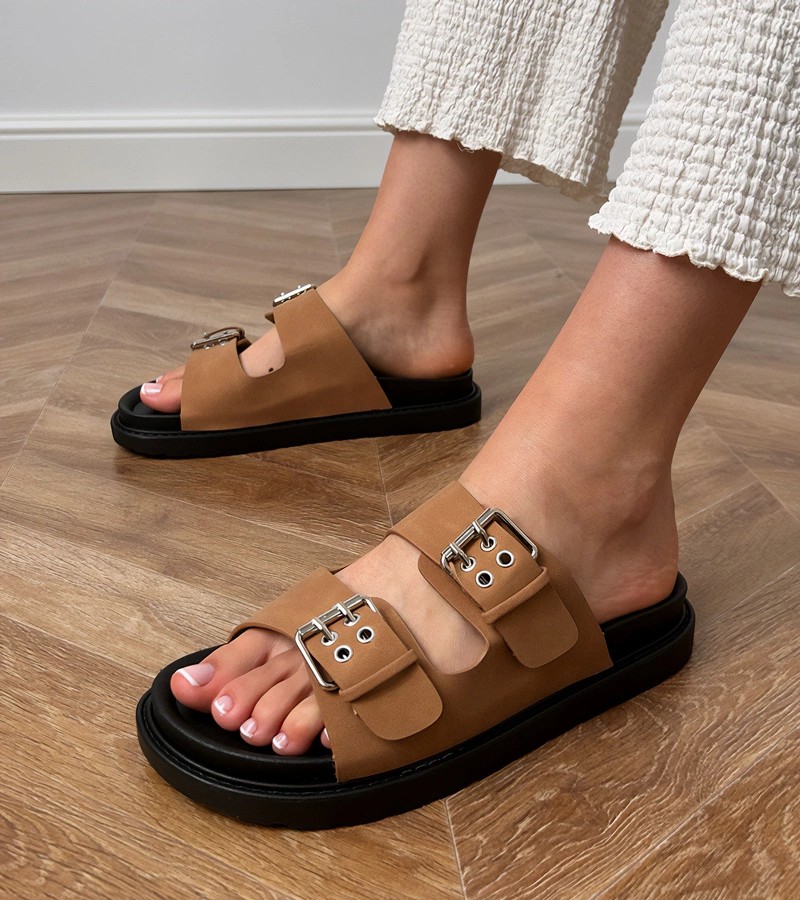 Rudos šlepetės su sagtimis Klinet