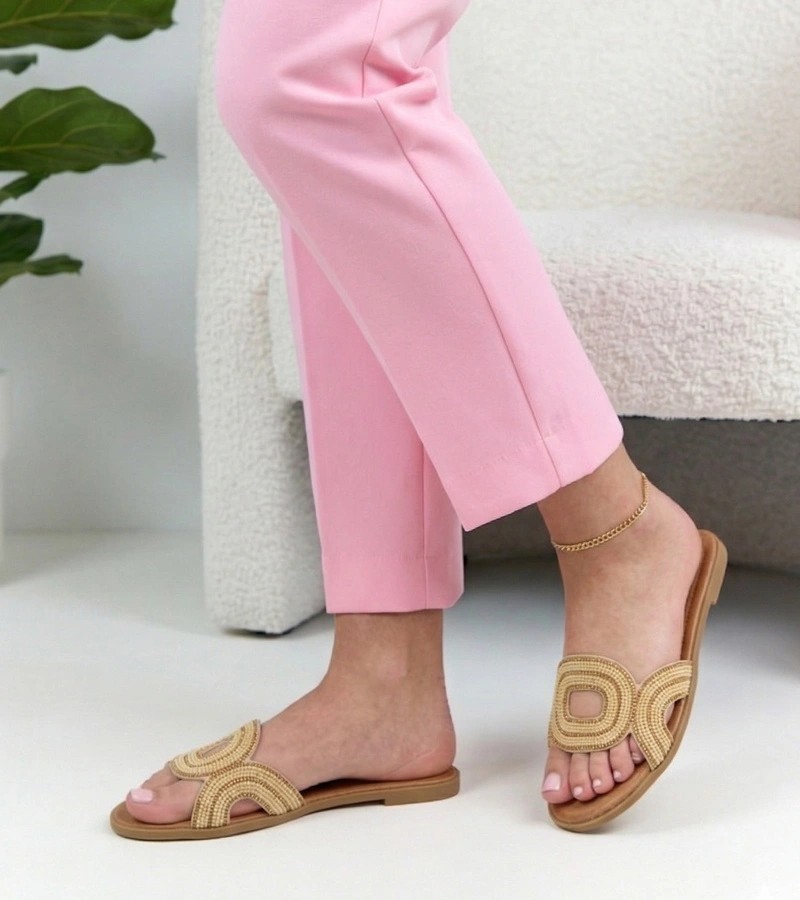 Smėlio spalvos Olivia Zirconia dekoruotos šlepetės