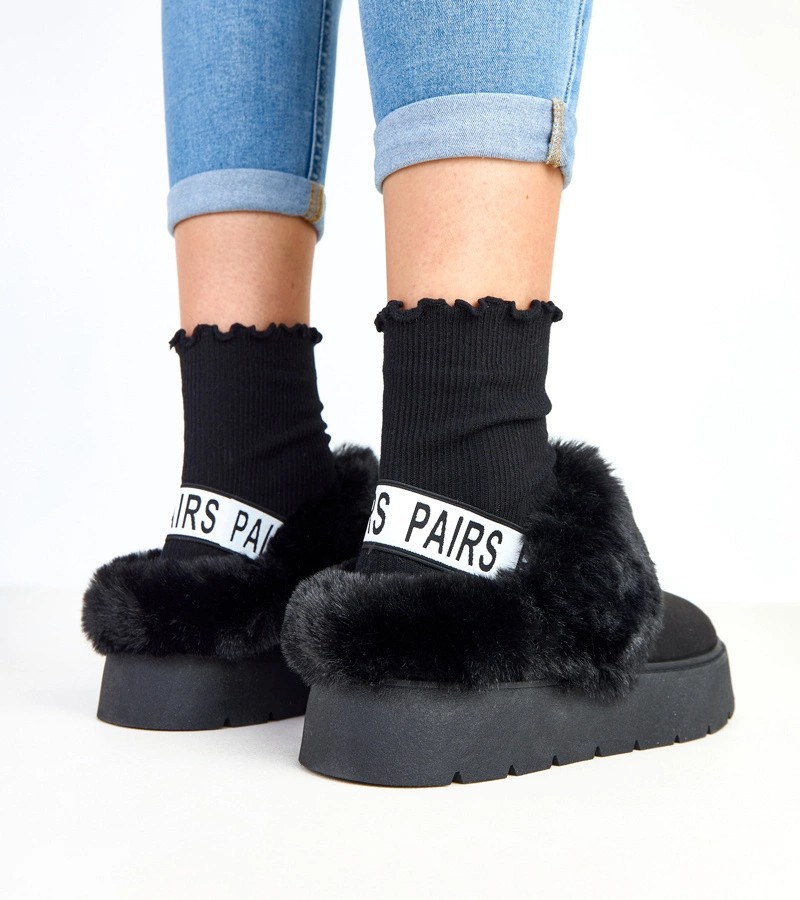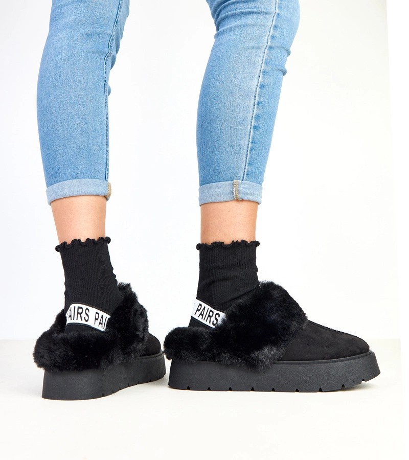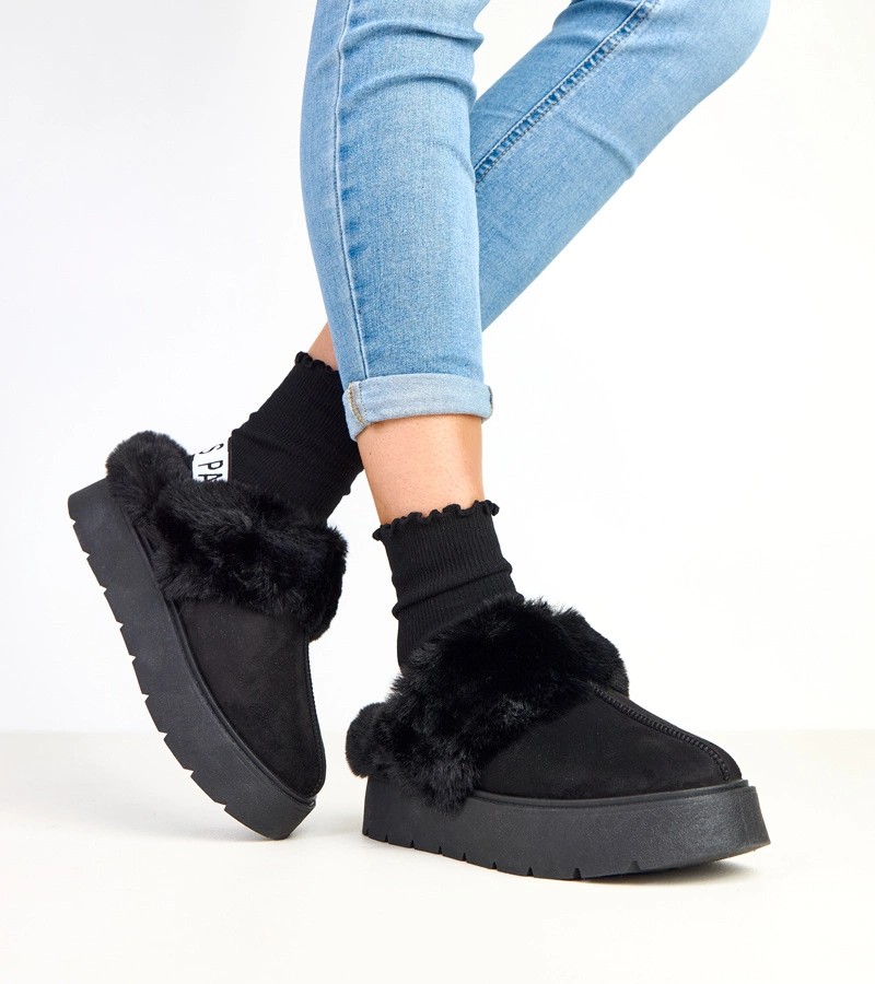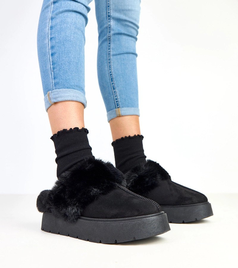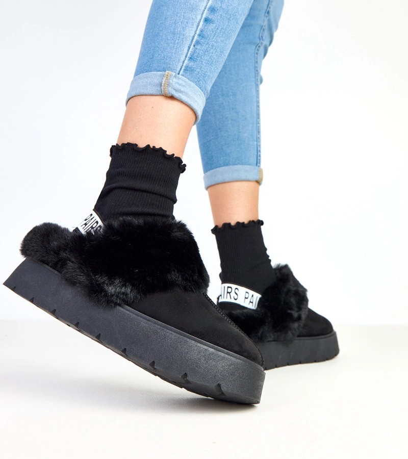 Juodi trumpi dirbtinio kailio apšiltinti sniego batai su elastine medžiaga Eija
